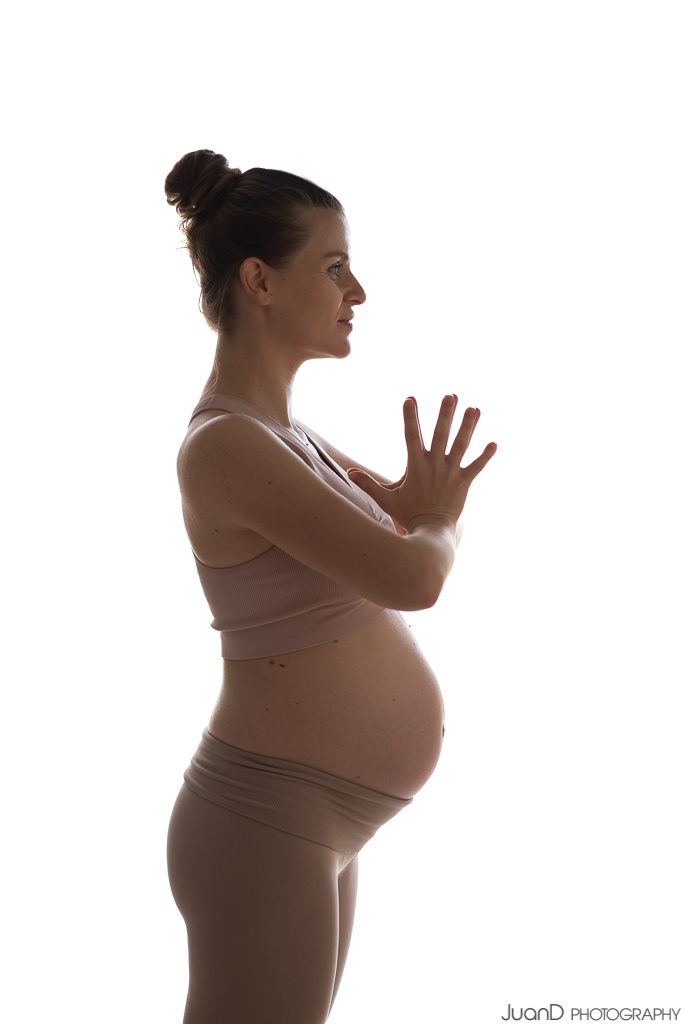Después de hablar con Wanda, organizamos una sesión de embarazo diferente. Fuímos a un centro de yoga para disponer de un lugar acorde y que favoreciera las fotografías. Una vez allí le recomendé diversos espacios que con la iluminación adecuada darían bonitos resultados. Para algunas fotografías, aprovechamos la iluminación natural y para otras, incorporamos luz con flashes. Como podéis ver, Wanda puso su todo arte y su técnica.